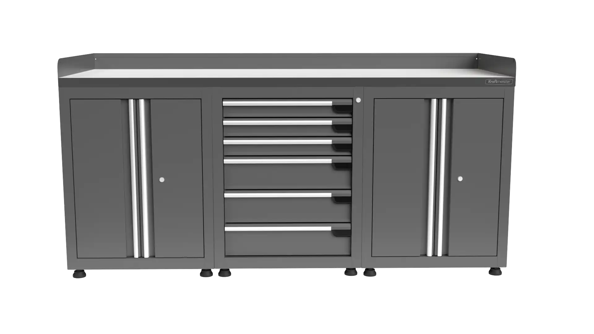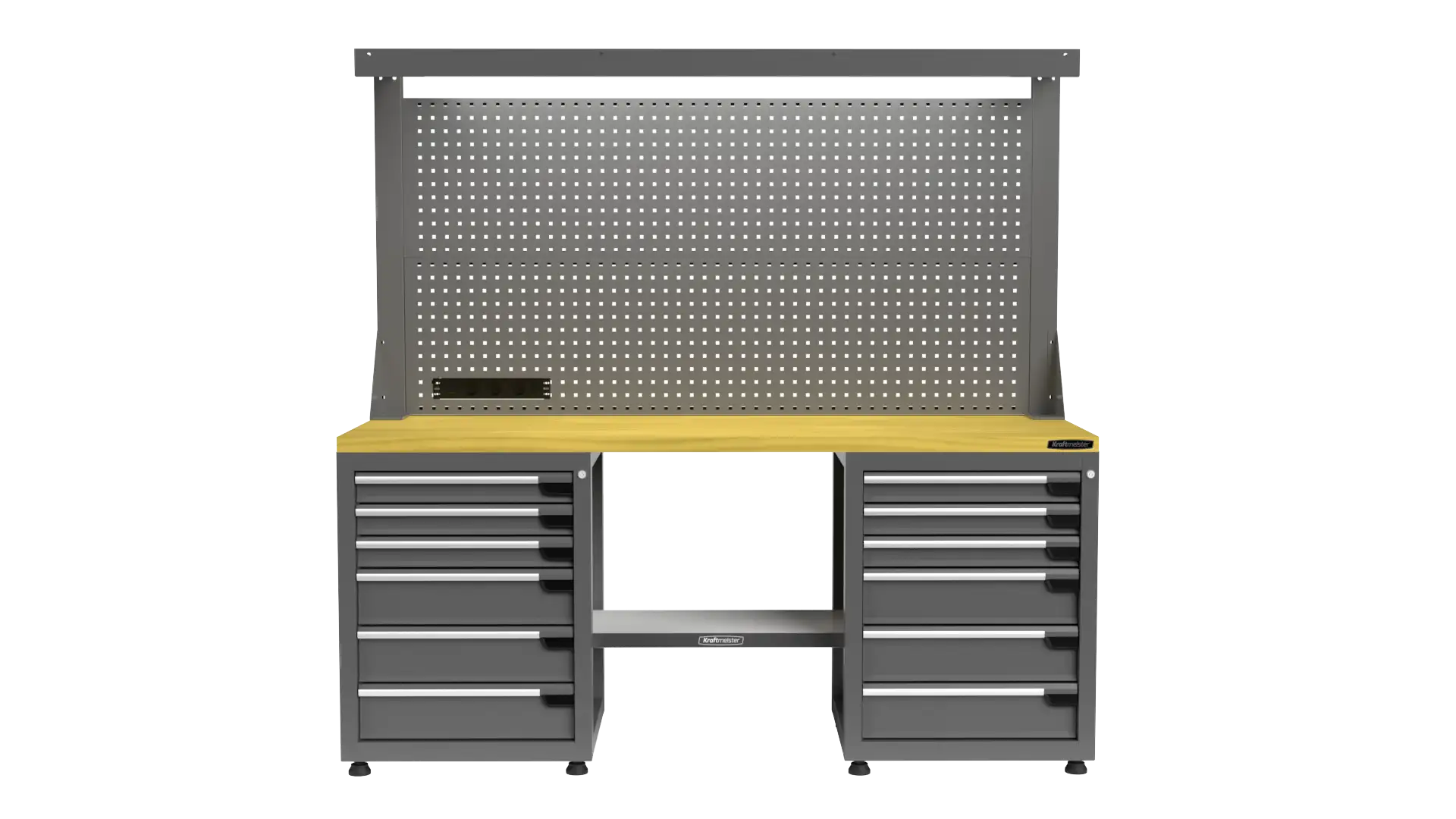 The Pro workbench comes standard with sturdy adjustable feet, allowing you to level the workbench even on uneven floors. This provides extra stability while working and prevents wobbling, giving you a solid and reliable workspace at all times.